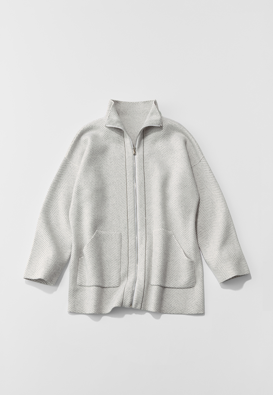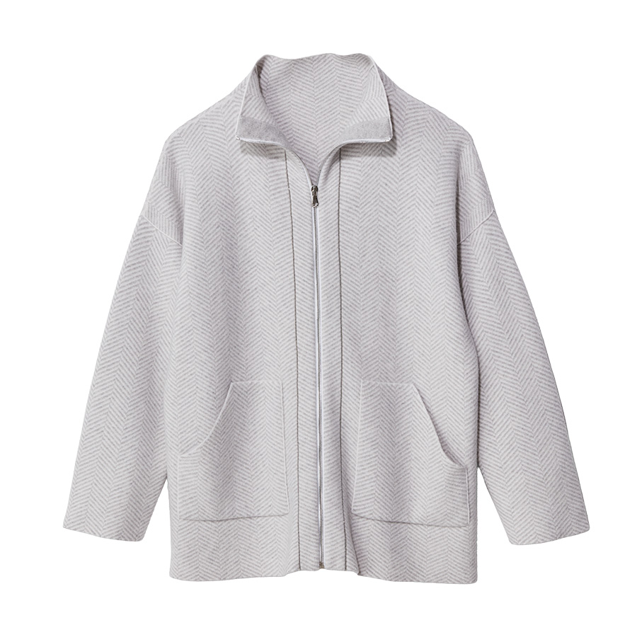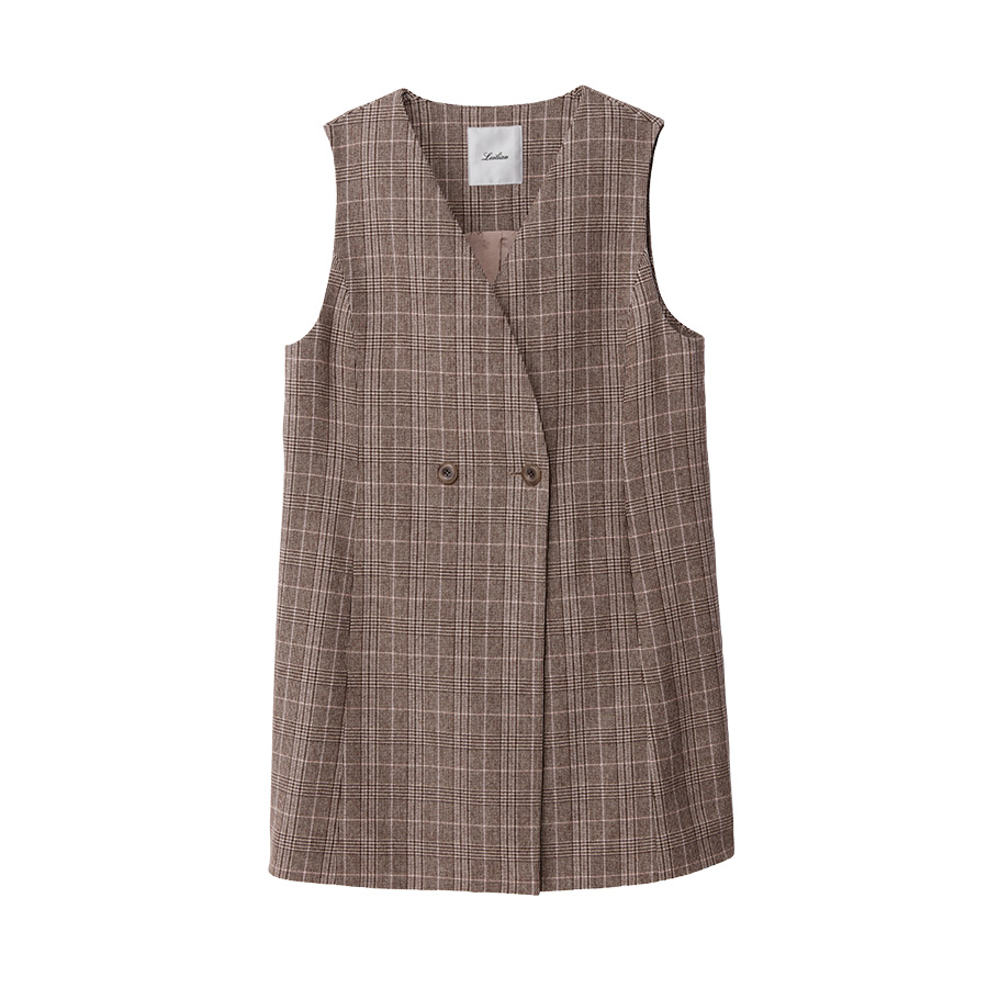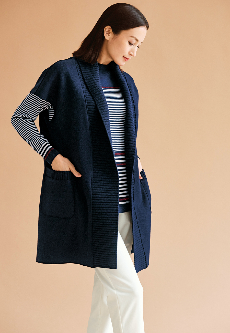 ■With Sophisticated Style薄くしなやかな深喜毛織のリバージャージー素材で仕立てたジレは、淡いトーンのリバーシブル仕様です。