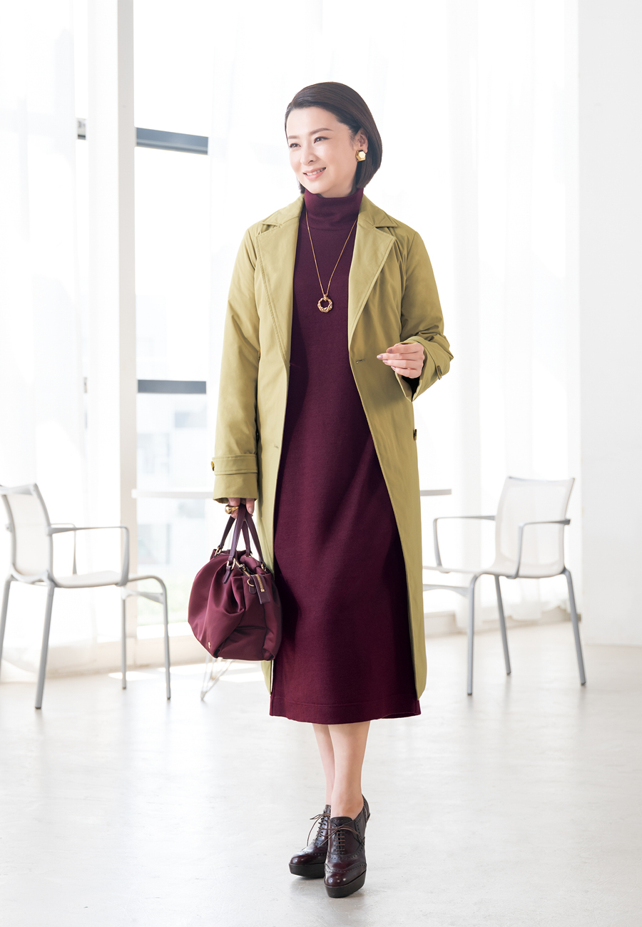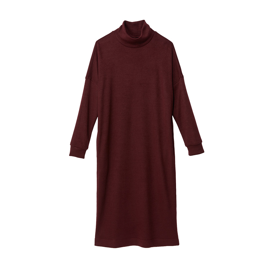 芳醇なボルドーカラーと着心地の良さが魅力のワンピースは、イタリア・FRANCO FERRAROとのコラボレーション。