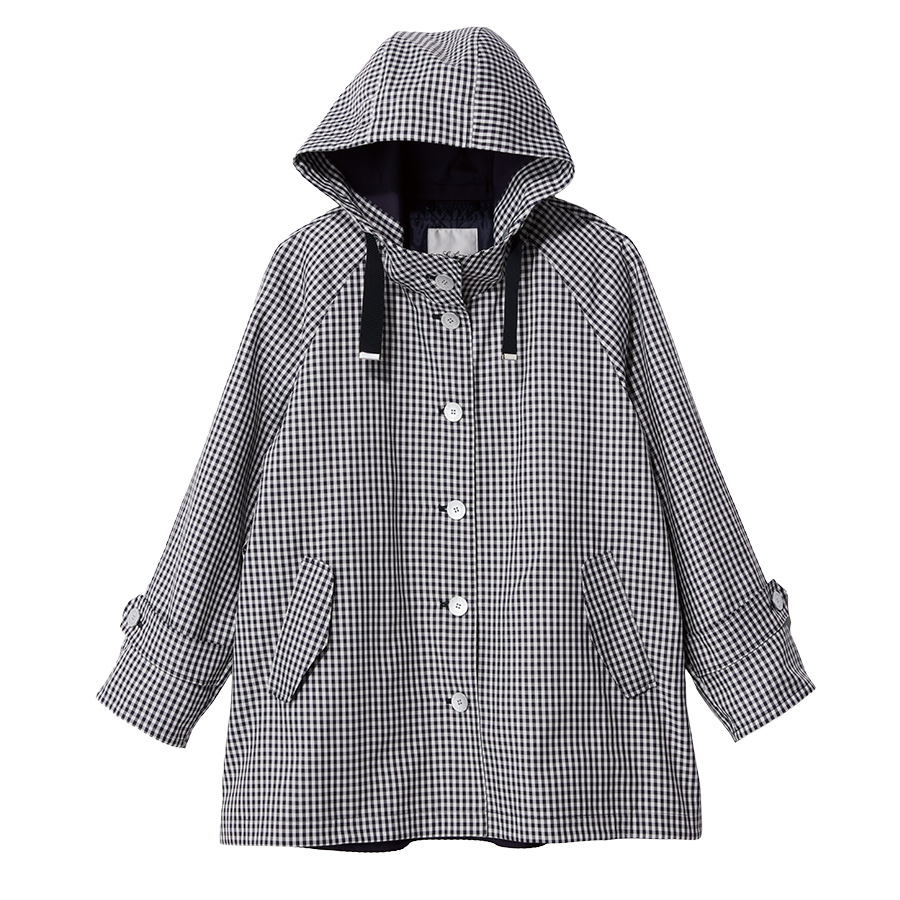 ギンガムチェックのコートは、取り外しできるキルトライナー付き。