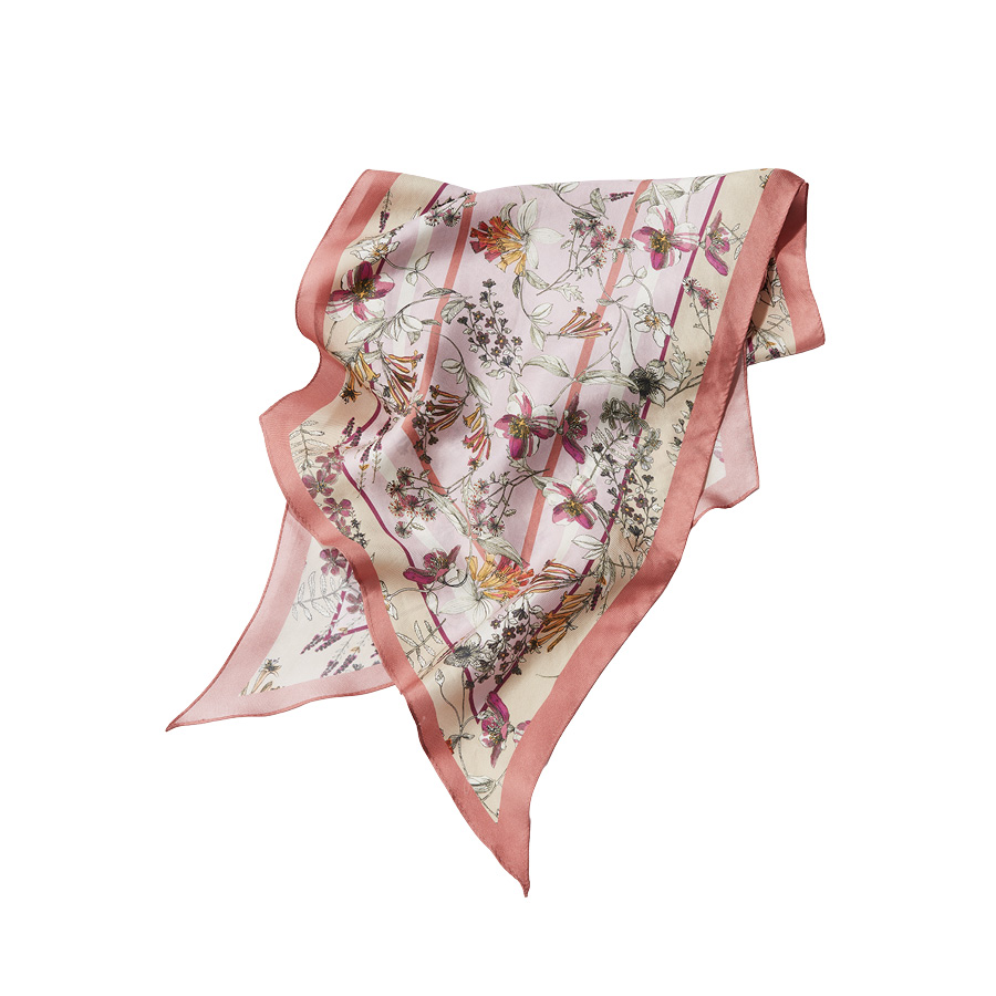 透明度の高い色彩のグラデーションが、フェミニンなアイテムもシックな印象へと導きます。 -