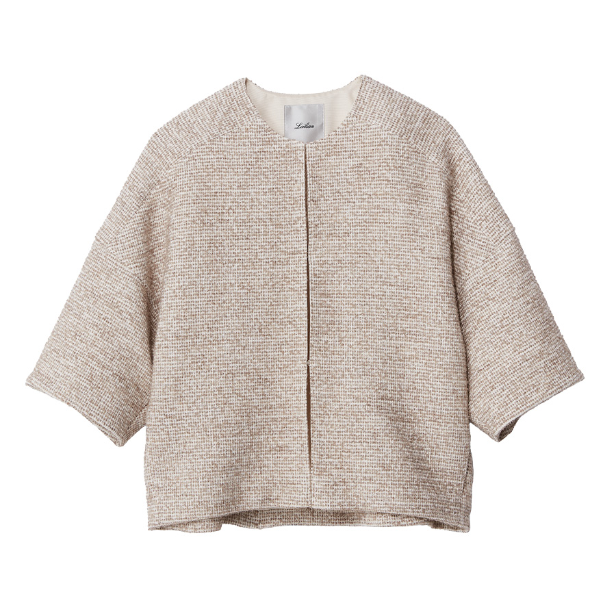 ■With Comfortable Styleイタリア・SMI社製のジャージー素材で仕立てた、伸びやかで軽く、柔らかなツイード調ジャケット。