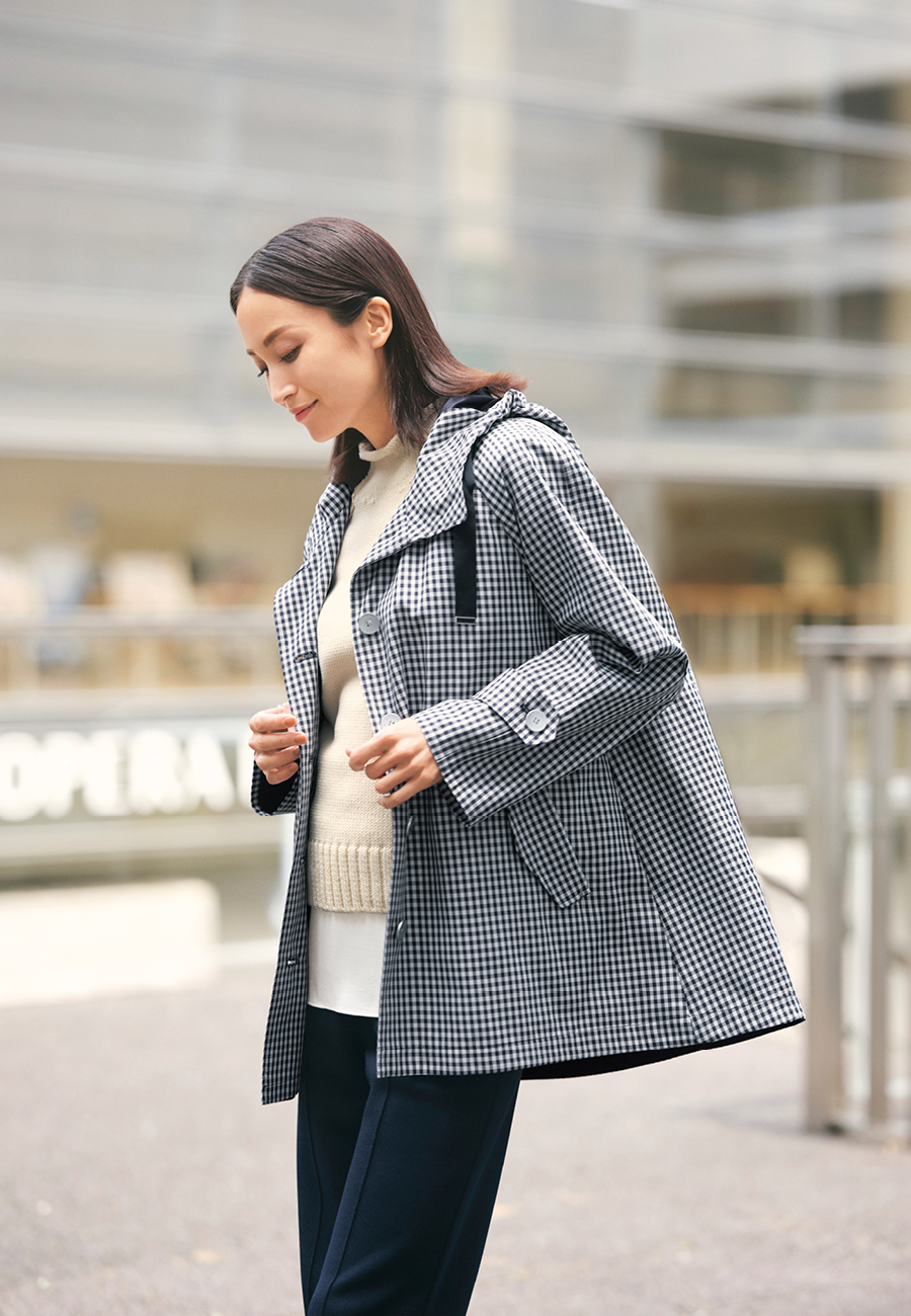 中綿入りのやさしい温もりと、トレンチライクなエレガントさを兼ね備えたコートを羽織って。 -