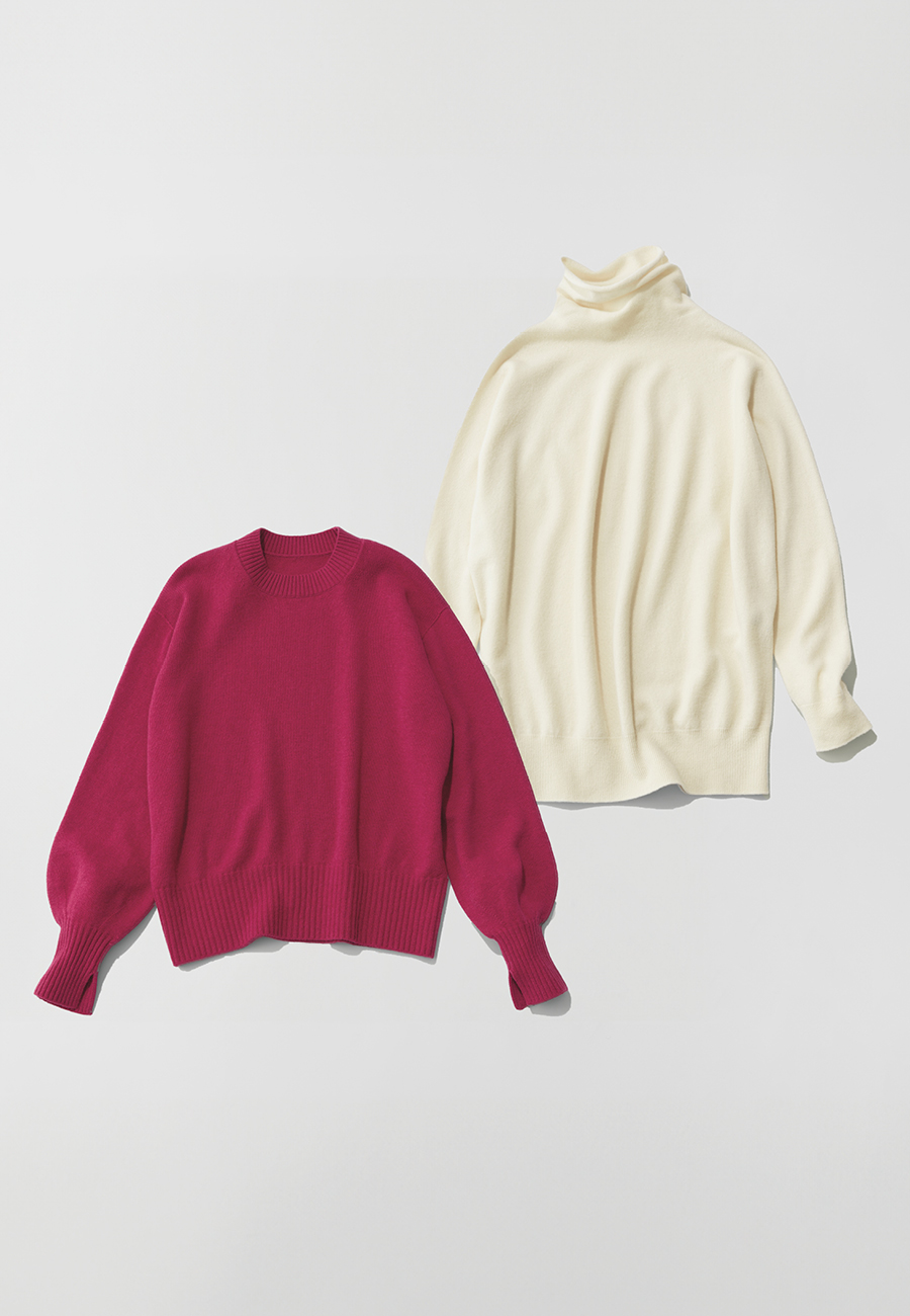 ■Special Picks -Sophisticated Items 2-美しい光沢感が印象的なニットは、深喜毛織の糸で編み上げているので、柔らかく、ふわりとした肌あたり。