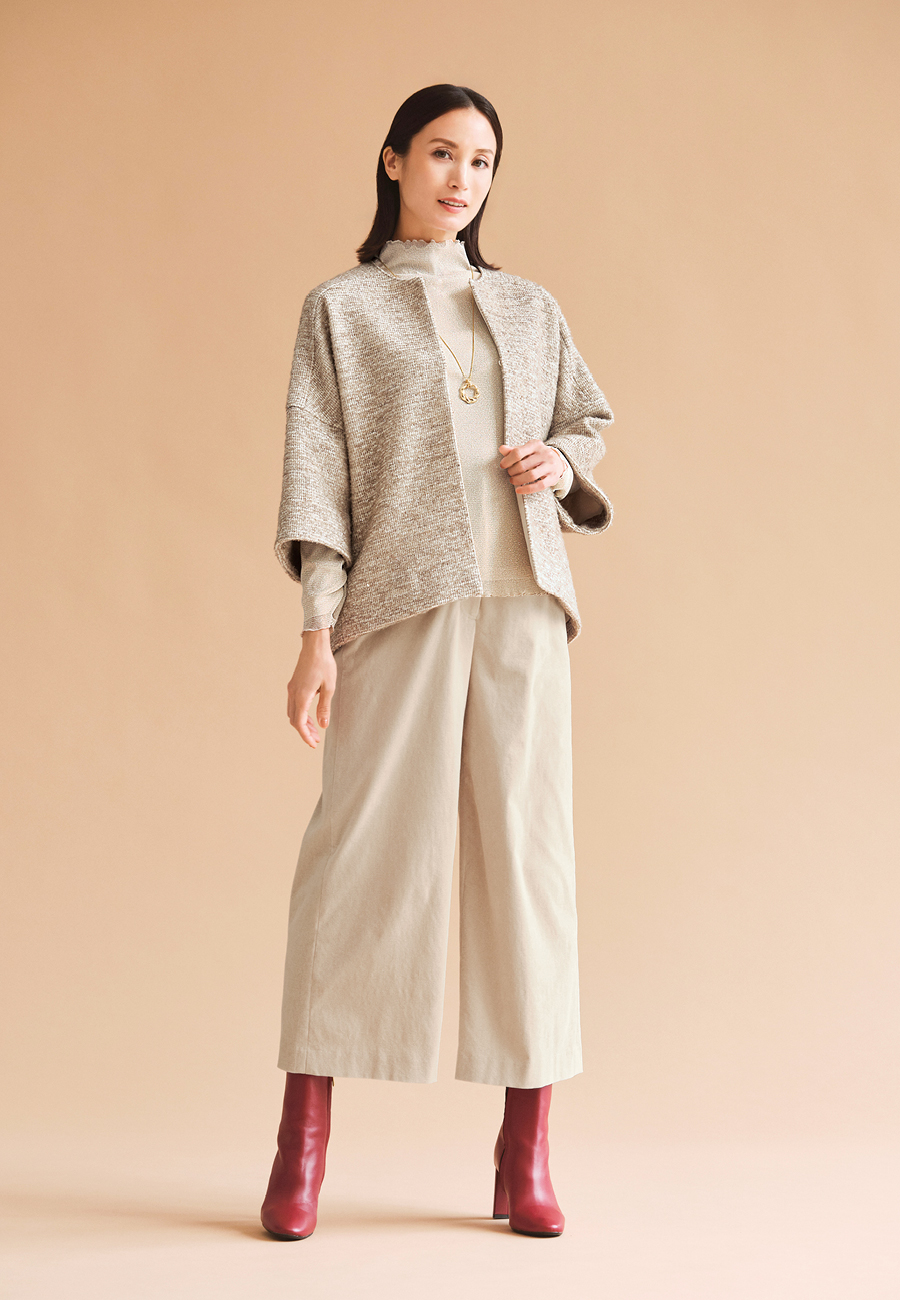控えめなラメの輝きとエフォートレスなシルエットで、リッチな佇まいに心地よい抜け感を演出。 -