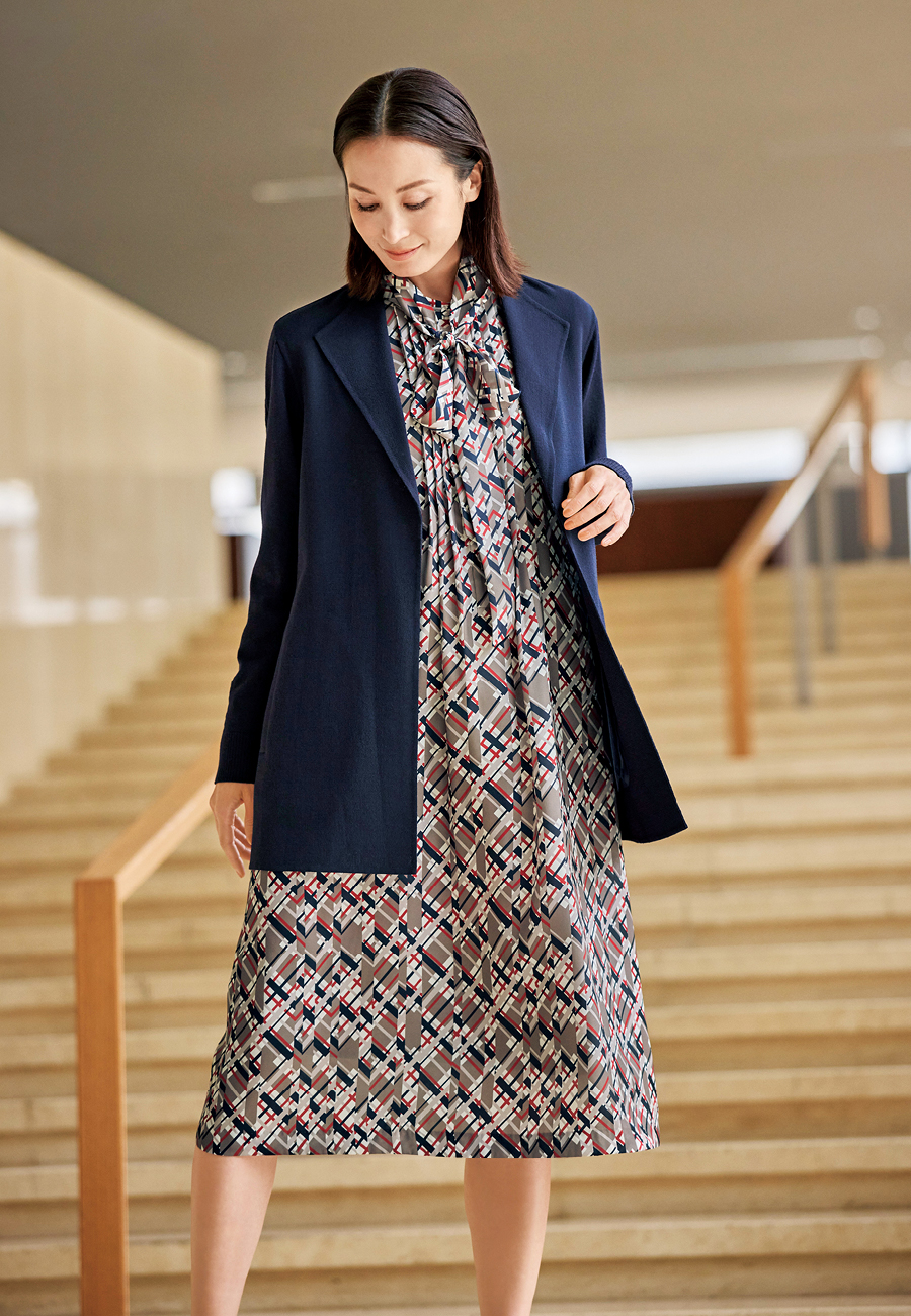 イタリア・RATTI社のジオメトリックプリント生地を使ったワンピースとともに、職人が生む洗練を纏って。 -