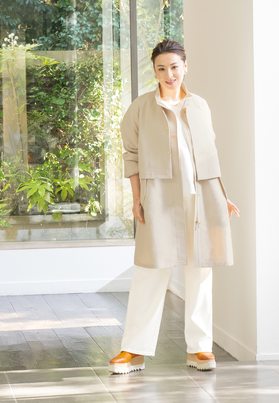 陽だまりの下、おしゃれの幅もぐんと広がって。コート¥137,500
